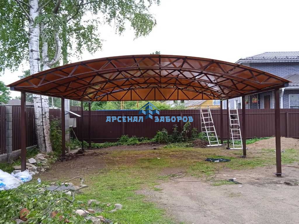 Мы убираем за собой строительный мусор и сдаем навес заказчику. Клиент подписывает акт выполненных работ.